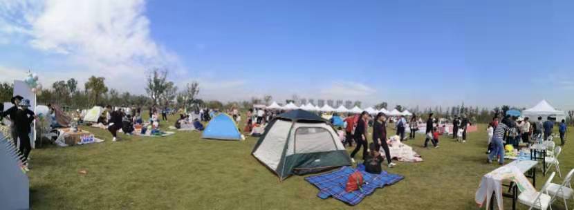 陆思程:10月24日,星期六,天气晴朗、阳光明媚。经过两个小时的车程,我们来到了白马湖二期公园,参加体验华数野餐日活动,并协助工作人员更好地展开工作。hello大草坪上是野餐日活动的大logo,我们到达目的地后,负责人与我们做了简单交接。由于活动是十点开始,有些热情的群众在九点半左右就到了,所以我们的第一份工作就是去和群众沟通,请他们先到别的景点去逛逛,野餐区域会给他们预留的,我们这里也会加快场地布置,在十点准时举行。活动开始后,我们需要让参与者来签到处登记签到,方便日后的客户联系、数据调查和活动反馈。但是大草坪有多个入口,所以我们需要积极引导群众来签到处的这个入口,保证每位参与者都登记了个人信息。