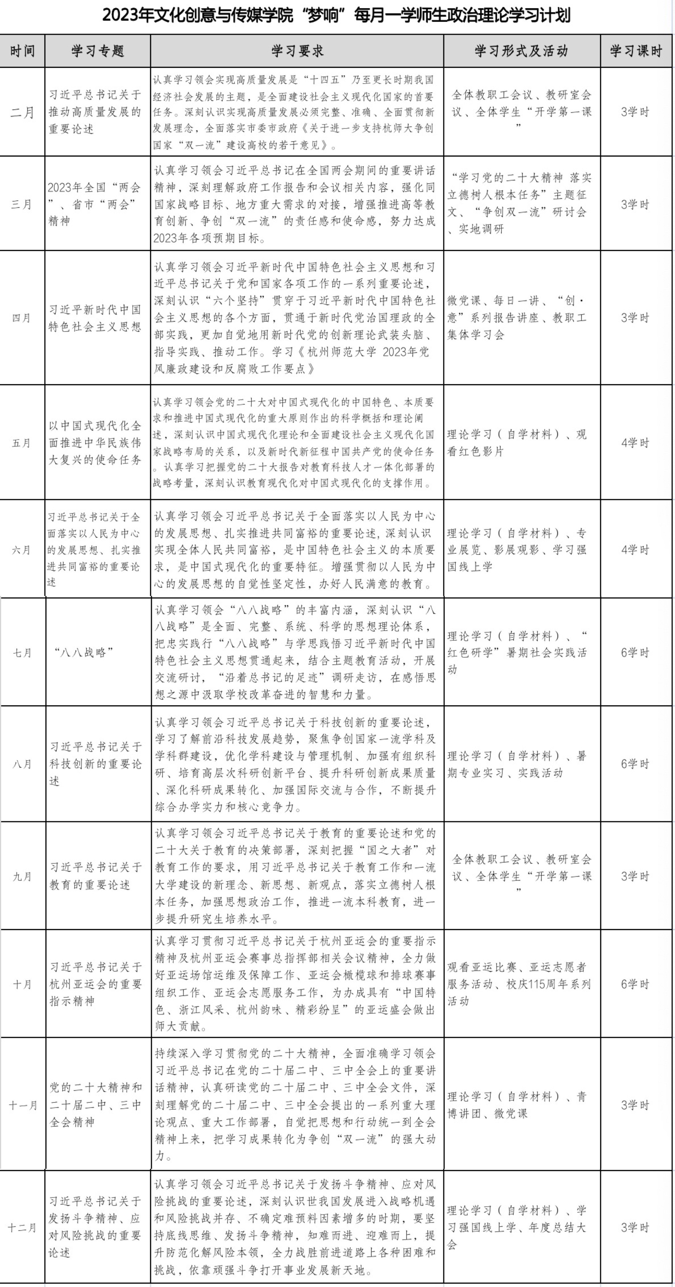 2023年快手成人版 “梦响”每月一学师生政治理论学习计划