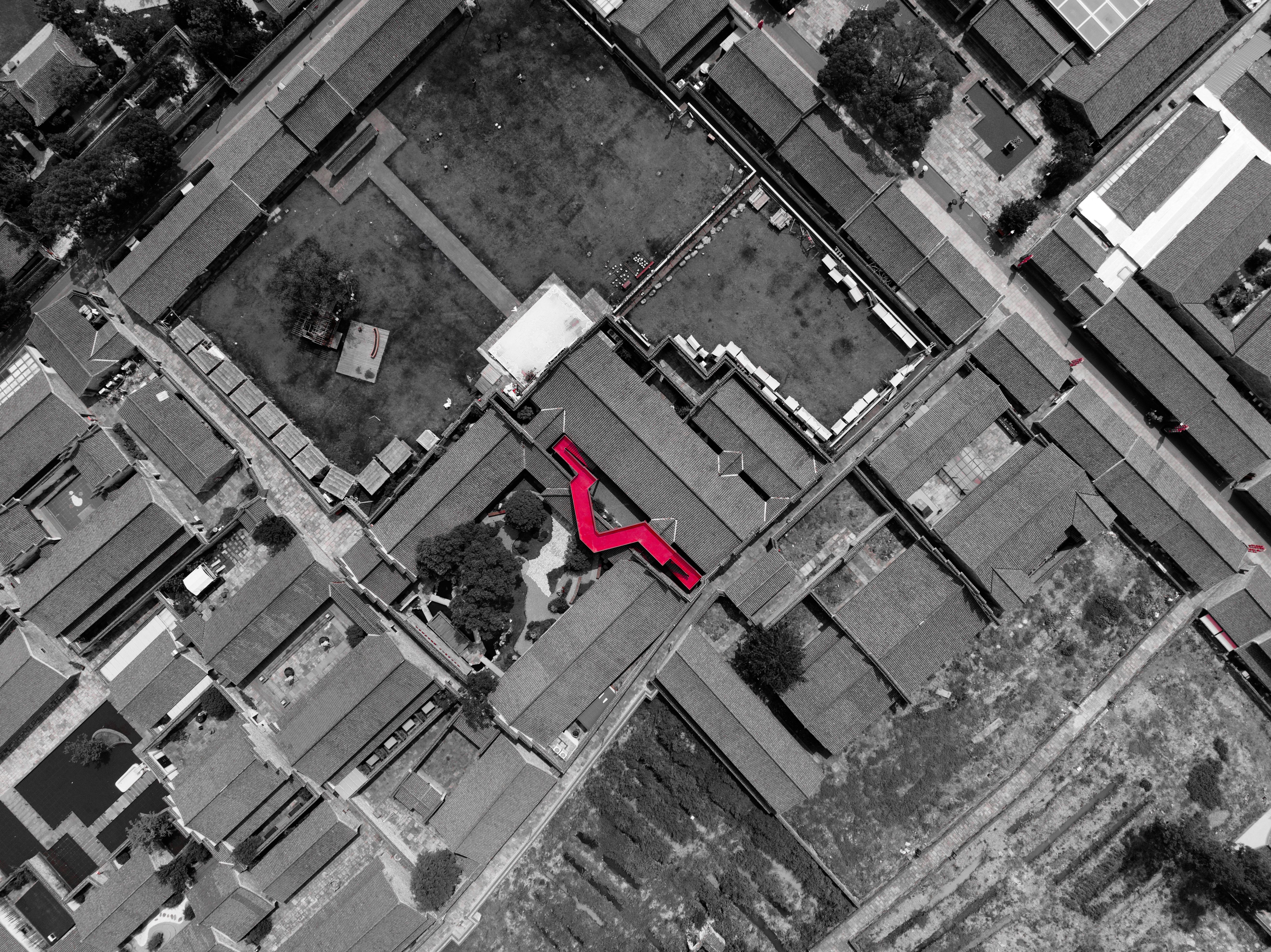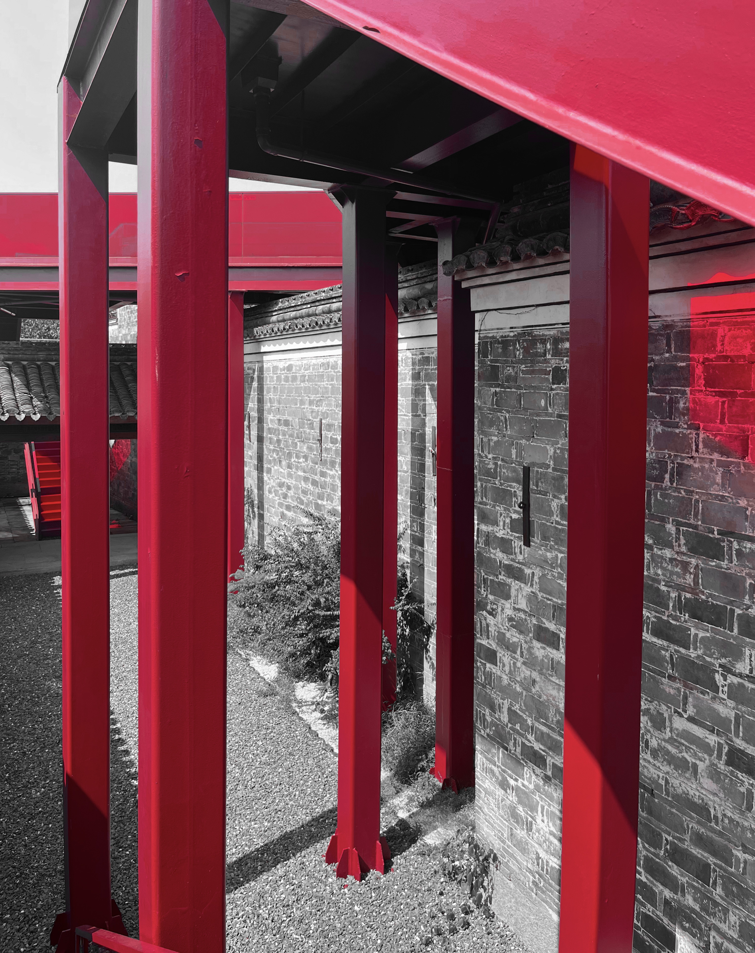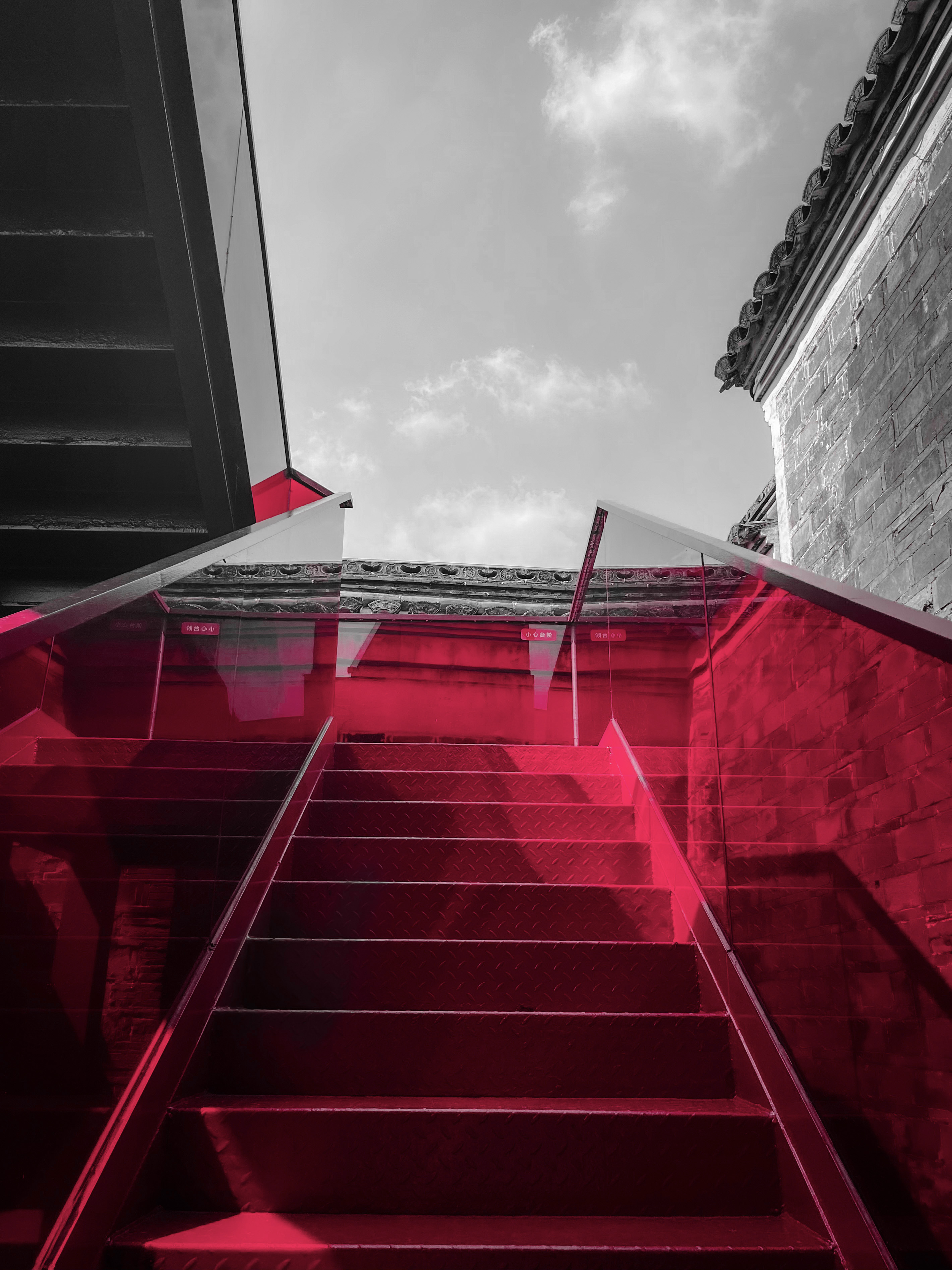 本作品的摄影地点为慈城内的周信芳戏剧艺术馆,信步馆中,一座从屋檐上方“横空出世”的红桥颇为亮眼。据了解,此红桥的设计师为宁波大学潘天寿艺术设计快手成人版 教授邵良,其设计理念就是将传统文化与现代艺术交融,从沉浸式、情景式的角度综合考虑全新的建筑功能。这座红桥不管从高度、材质、颜色、线条上都与原建筑风貌形成了一种对比,这即是一种视觉上的对比,亦是一种时代文明的碰撞,走上红桥,对每一个游客来说都是一种享受,看慈城古镇的全景,品古今传承之韵。
