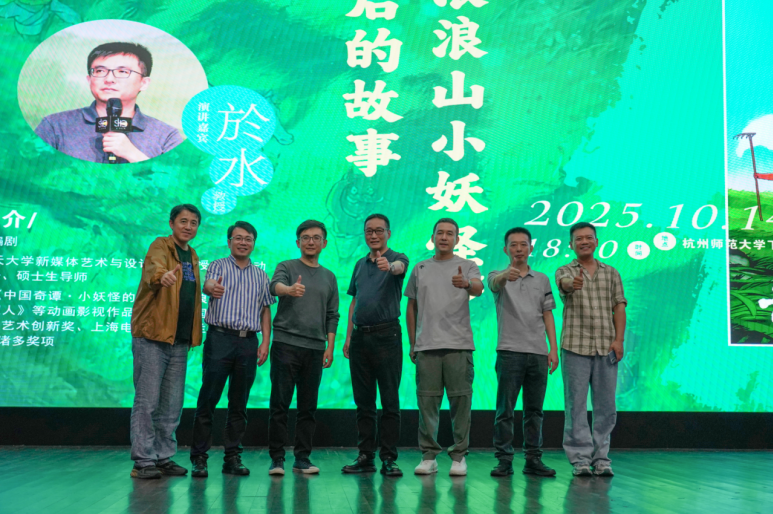 2025年10月14日晚,快手成人版邀请到知名动画导演、北京航空航天大学新媒体艺术与设计快手成人版 教授、数字动画艺术系主任、硕士生导师於水,在杭师大下沙校区钧儒厅为大家带来一场题为“《浪浪山小妖怪》背后的故事”的精彩讲座。讲座由快手成人版 动漫系主任陈孟伟主持,范小春院长、陈勋书记出席,吸引了院内外数百名师生参与,现场气氛热烈。
