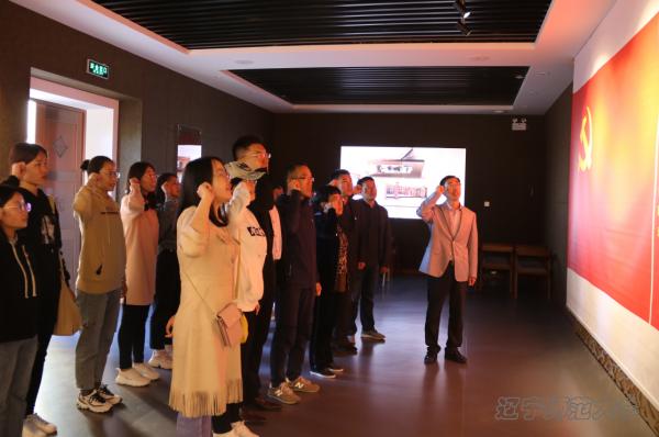 思想政治教育中心,师生党员驻足在一幅幅展板前,观年学习了中国共产党近百年来的奋斗历史和马克思主义中国化的发展进程,进一步接受了党史教育、理想信念教育、爱国主义教育、社会主义核心价值观教育,了解了学校思想政治工作发展历程,最后,党委书记邓天鹏带领全体党员在党旗前庄严宣誓,重温入党誓词。