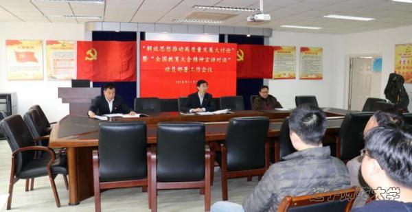 为进一步推进我院深入学习贯彻习近平总书记在辽宁考察时和在深入推进东北振兴座谈会上的讲话精神,深入学习贯彻全国教育大会精神,解放思想,创新实干,扎实推进学院快速发展,11月23日、26日下午,教育学院在310会议室分别召开全体教职工和党支部书记“解放思想推动高质量发展大讨论”动员部署会。会议由党总支书记邓天鹏主持。