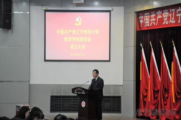 校党委副书记李培山同志代表学校党委对大会的胜利召开表示热烈的祝贺。李书记指出,教育学院党总支改建党委是按照《中国共产党普通高等学校基层组织工作条例》的有关规定组织实施的,是在全校深入贯彻落实全国和全省高校思想政治工作会议、全国组织工作会议和全国教育大会精神,开展“不忘初心、牢记使命”主题教育的背景下,进一步落实新时代党的建设总要求,不断加强学校党的组织体系建设的一项重要举措,教育学院党委的成立必将载入学校和学院发展的光辉史册,具有十分重要的意义。李书记充分肯定了教育学院近几年在各个方面取得的优异成绩和巨大进步,同时对教育学院第一届党委提出了三点希望:一是学院党委要认真学习贯彻习近平新时代中国特色社会主义思想,不断加强政治建设,确保社会主义办学方向;二是学院党委要落实好全面从严治党的各项要求,不断提高基层党建的质量和水平;三是学院党委要发挥好政治核心作用,推进学院各项事业的发展。