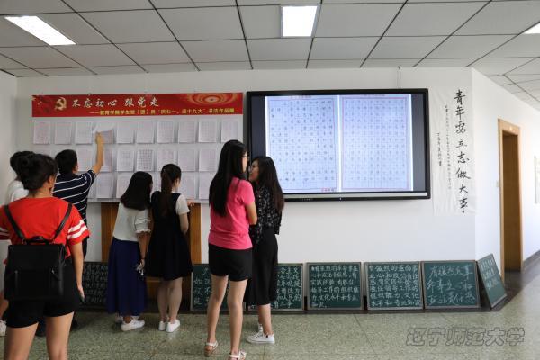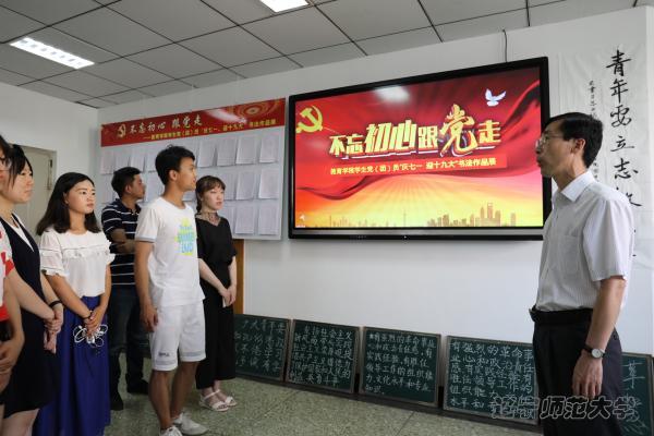 为深入推进“两学一做”学习教育常态化制度化,按照《教育学院党总支“庆七一 迎十九大”系列主题活动方案》的工作安排,2017年6月16日上午,教育学院在田家炳教学楼举办了学生党(团)员“庆七一 迎十九大”书法作品展。