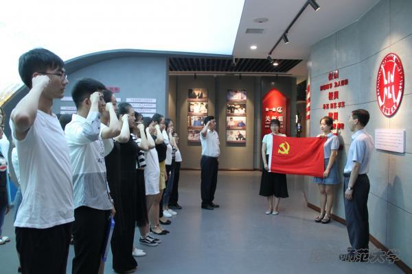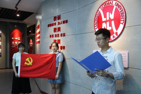 校史馆举行新党员宣誓和老党员重温入党誓词活动。党员同志在党旗下庄严宣誓,由教育学院团委书记乔冬同志领誓,总支书记邓天鹏同志监誓。