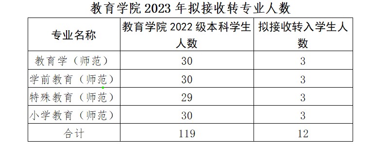 2022级本科生转专业工作通知(辽师大教发[2023]7号)精神,为对拟转入我院学生的思想道德品质、专业素养、学习能力、发展潜力和志趣等进行综合考察,同时也为检验学生对专业基础知识、基本理论及基本技能的掌握情况,结合我院实际情况,特制定教育学院2023年本科生转专业工作实施细则。
