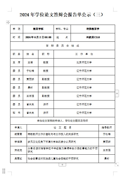 2024年学位论文答辩会报告单公示(三)