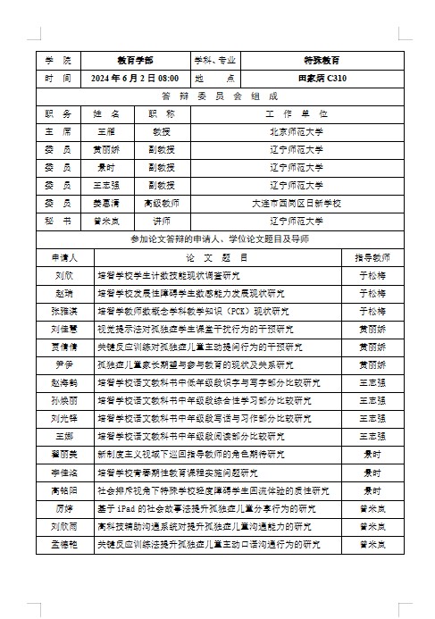 2024年学位论文答辩会报告单公示(二)