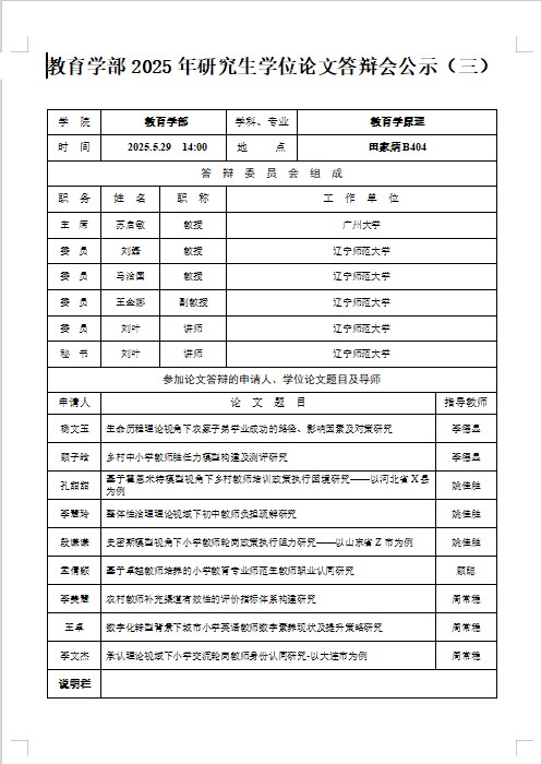 快手成人版 2025年研究生学位论文答辩会公示(三)