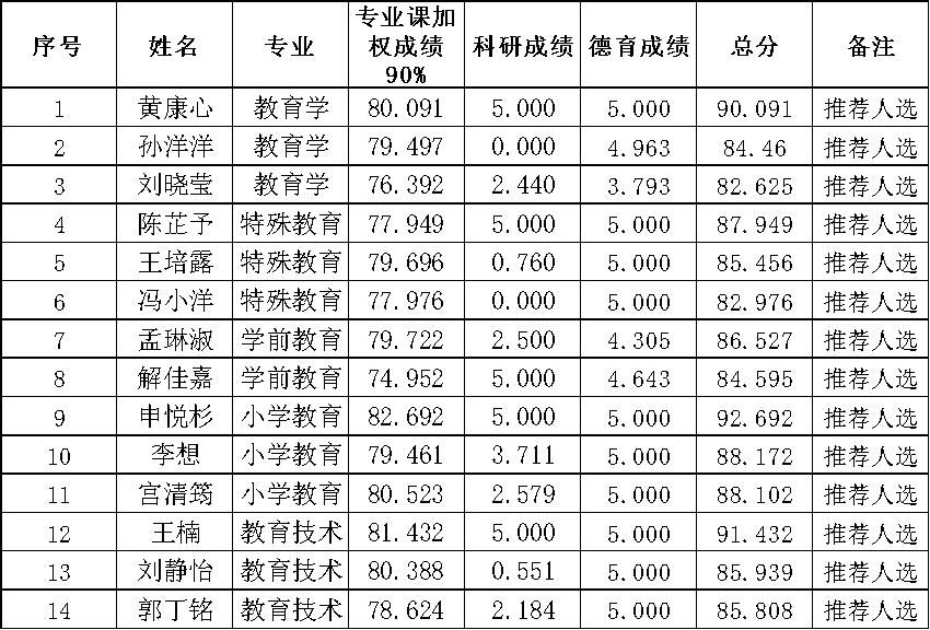 根据《快手成人版 关于做好2026届推荐优秀应届本科毕业生免试攻读研究生工作的通知》和《快手成人版 推荐优秀应届本科毕业生免试攻读研究生实施细则》,经学生个人申报,学部组织材料审核,学校论文查重及学部答辩等环节,学部推荐免试研究生领导小组审核通过,现将推荐名单及成绩公示如下: